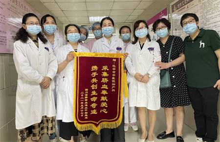 5月27日上午,四川省臍帶血造血干細(xì)胞庫將一面“采集臍血奉獻(xiàn)愛心·攜手共創(chuàng)生命奇跡”的錦旗送到婦產(chǎn)科主任陳麗瓊的手中,向該院婦產(chǎn)科全體醫(yī)護(hù)人員表示真摯的感謝。