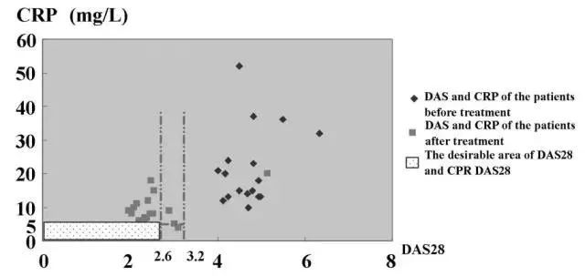 對17例受試者進行干細胞移植,輸注1×107間充質干細胞,隨訪4月~14月,ACR20評分受試者在睡眠、飲食、疲勞感、體力等方面有顯著改善,晨僵小于1小時,疼痛腫脹的關節(jié)數減少,多關節(jié)疼痛、壓痛、腫脹明顯緩解,關節(jié)活動度增加,病情無反復。按DAS28評分標準,12例得到緩解,3例處于低活動期。