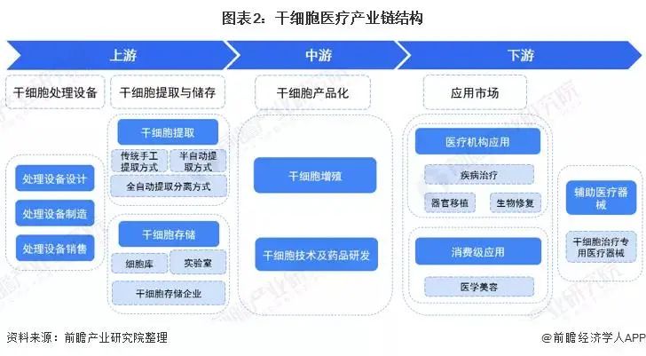 干細(xì)胞治療指的是用干細(xì)胞衍生的組織或器官替代病變的組織和器官,應(yīng)用于脊髓損傷、糖尿病、缺血性心臟疾病等傳統(tǒng)醫(yī)學(xué)方法無(wú)法醫(yī)治的疾病。而干細(xì)胞醫(yī)療產(chǎn)業(yè)是包括干細(xì)胞提取、干細(xì)胞存儲(chǔ)、干細(xì)胞產(chǎn)品研發(fā)和干細(xì)胞治療在內(nèi)的整個(gè)產(chǎn)業(yè)。