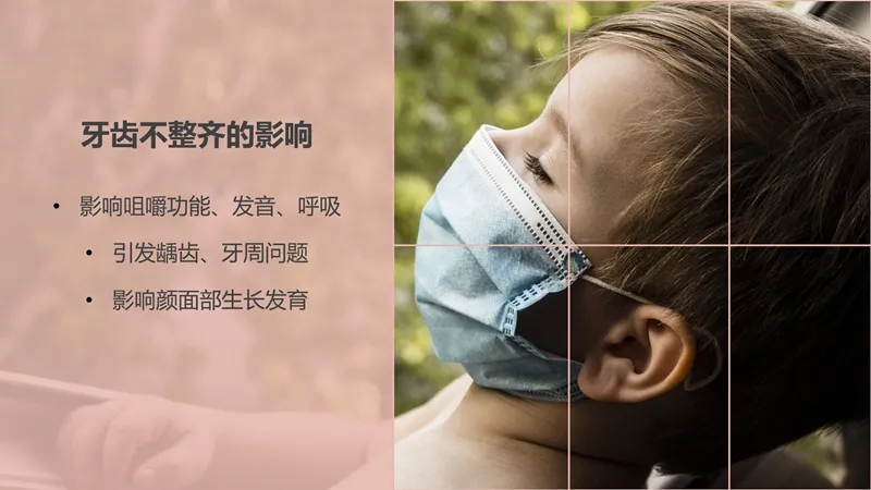 3)影響顏面部的生長(zhǎng)發(fā)育,牙齒在整個(gè)顏面部的生長(zhǎng)發(fā)育過(guò)程當(dāng)中起著非常重要的作用。現(xiàn)在疫情期間大家都佩戴口罩,那么就有了“口罩整容術(shù)”這個(gè)詞。