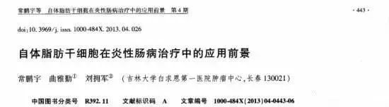 Garcia等人利用自體脂肪干細胞治療克羅恩病合并肛瘺的前瞻性I期臨床實驗。共有5名患者入組,利用手術結合自體脂肪干細胞局部注射的方式成功修復瘺管6例,另外2例瘺管的外口不完全閉合、分泌物減少,修復成功率達75%。