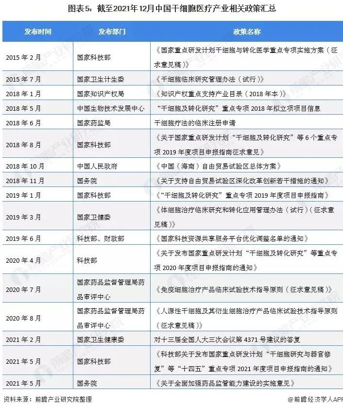進(jìn)入“十四五”時(shí)期以來(lái),政策紅利繼續(xù)加持。2021年初國(guó)家重點(diǎn)研發(fā)計(jì)劃“十四五”總體布局形成,將“干細(xì)胞研究與器官修復(fù)”納入“十四五”第一批啟動(dòng)國(guó)家研發(fā)計(jì)劃的6個(gè)重點(diǎn)專項(xiàng),持續(xù)促進(jìn)干細(xì)胞研究的規(guī)范和臨床應(yīng)用的轉(zhuǎn)化。
